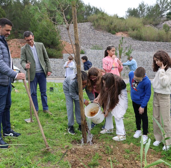 Crianças plantaram alfarrobeiras no Parque Urbano com a ajuda do Presidente da Câmara Municipal.