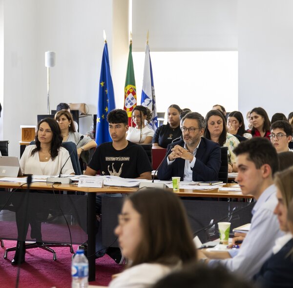 Sessão teve lugar a 19 de maio nos Paços do Concelho, onde alunos de escolas do concelho assumiram o papel de eleitos municipais.