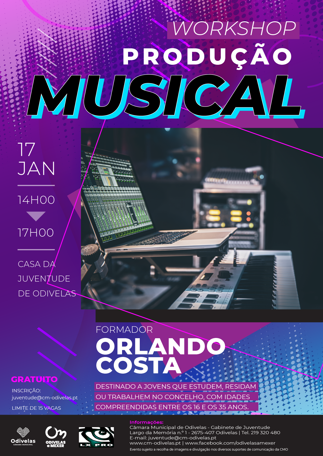 A Câmara Municipal de Odivelas, através do Gabinete de Juventude, irá realizar o Workshop Produção Musical, que será ministrado pelo formador Orlando Costa.