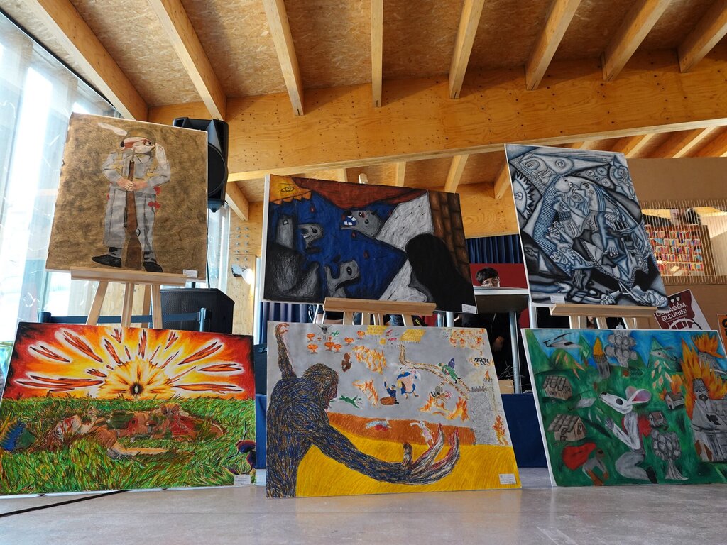 Até 13 de junho, a Casa da Juventude de Odivelas tem patente a exposição «A Paz, que caminhos?», composta por trabalhos dos alunos do 12.º ano de Artes Visuais da Escola Secundária da Ramada, que retratam temáticas como o bullying e agressão em contexto escolar.