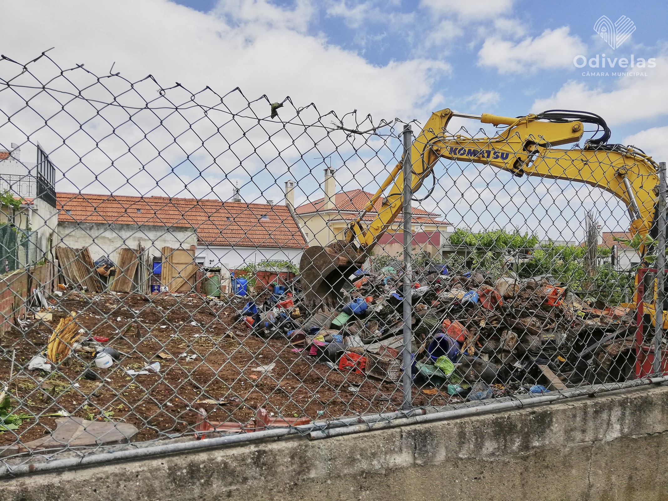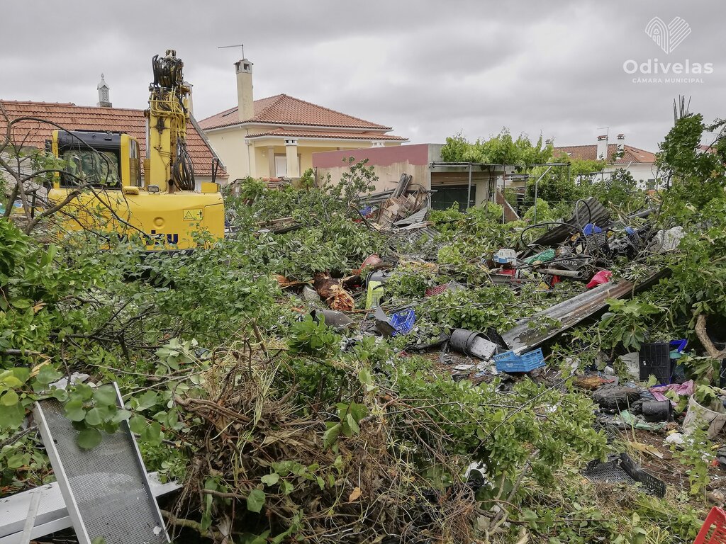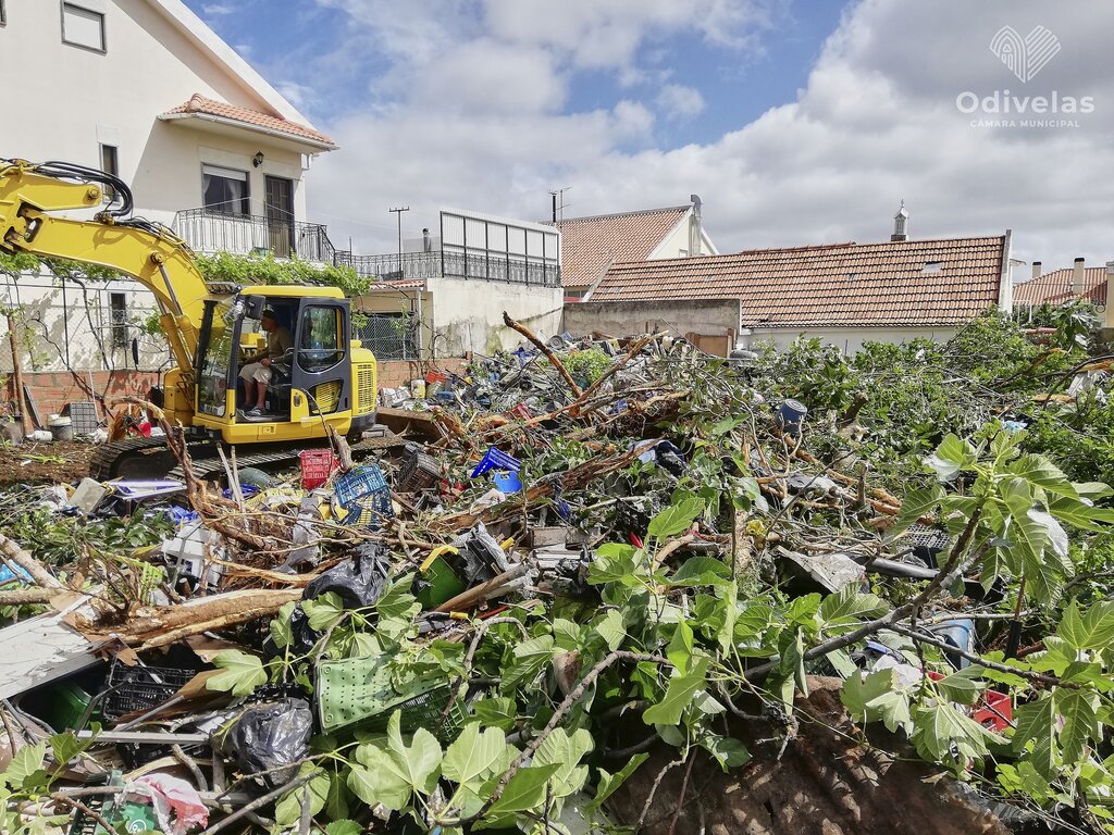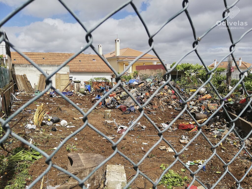 Foram retiradas 90 toneladas de lixo diverso de um lote urbano em Famões.