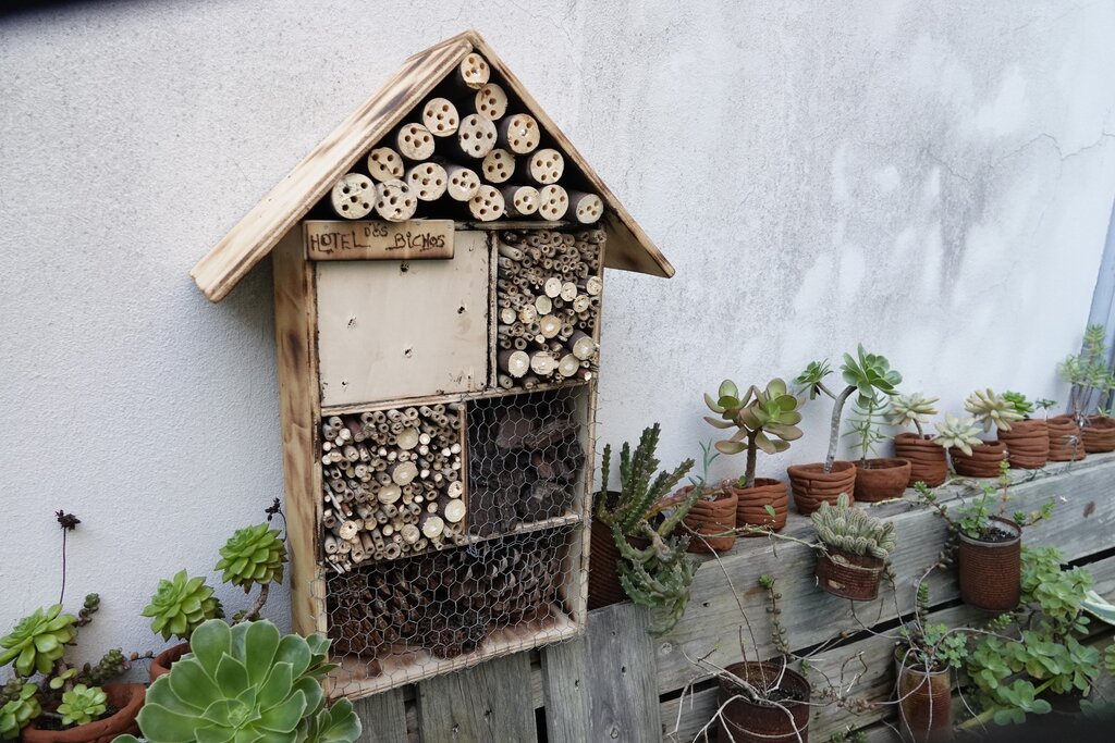 Projeto municipal de leitura e arte foi retomado com a construção de hotéis para insetos no Jardim Metamorfoses, na Biblioteca Municipal D. Dinis.